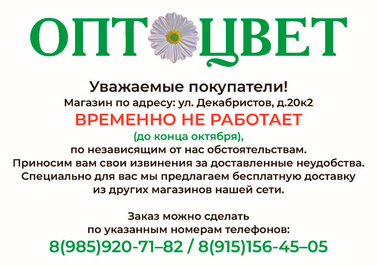 Наша цветочная база предлагает Вам купить свежие цветы оптом и в розницу в Митино, Отрадном, Братиславской, Рязанском проспекте и на Щукинской (СЗАО, доставка по Москве). Большой выбор и низкие цены. Наша компания на постоянной основе сотрудничает с зарубежными брокерами. Осуществляем прямые поставки из Голландии, Эквадора и других стран. В нашем ассортименте представлено более 350 позиций.